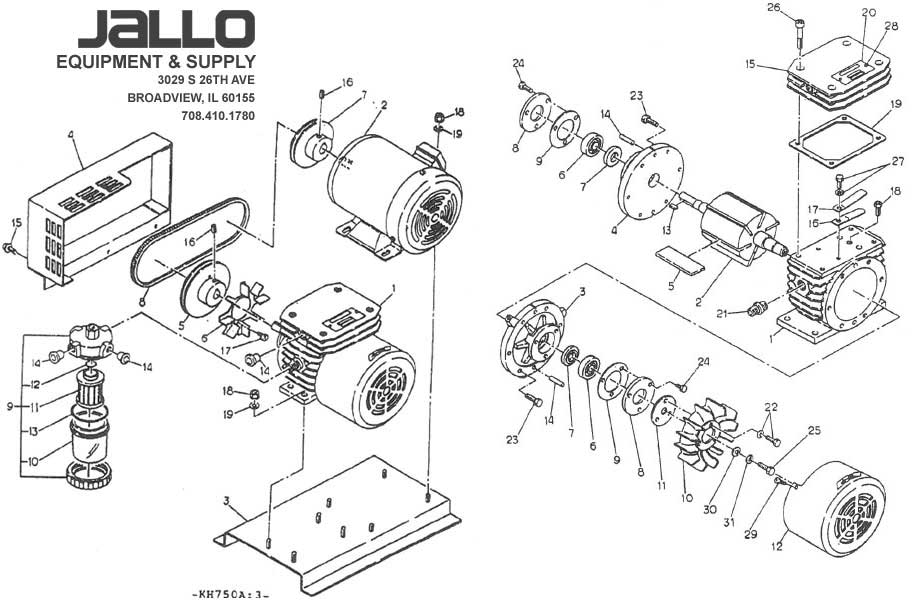 The Orion™ KH series of vacuum pumps range in size from the Orion™ KH200/KHA200 at 0.25HP to the Orion KH410/KHA400 and the Orion™ KH750/KHA750A, with CFM levels from 5 to 10 CFM. The Orion™ KH410 and KH750 are no longer produced but call Jallo for parts which are still available for these units.