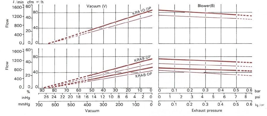 These pumps are capable of producing vacuum levels of up to 25 inches of mercury. The Orion™ KRADP Series of pumps can produce well over 150 CFM of vacuum and pressure.